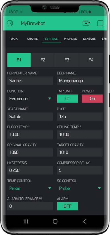 - Control temperatures, fermentation profiles etc for up to 4 fermenters/keezers on your phone from anywhere with an internet connection.
